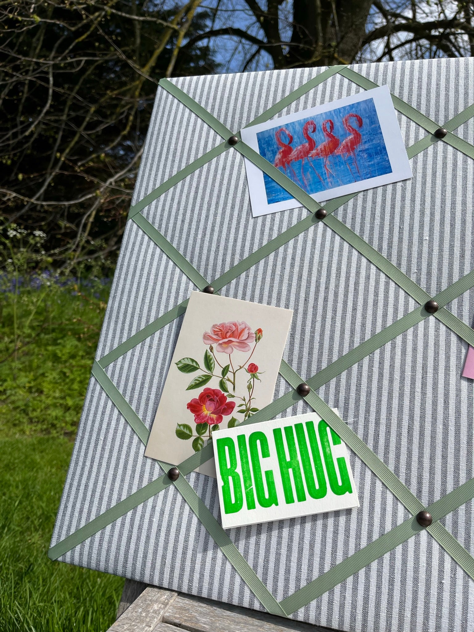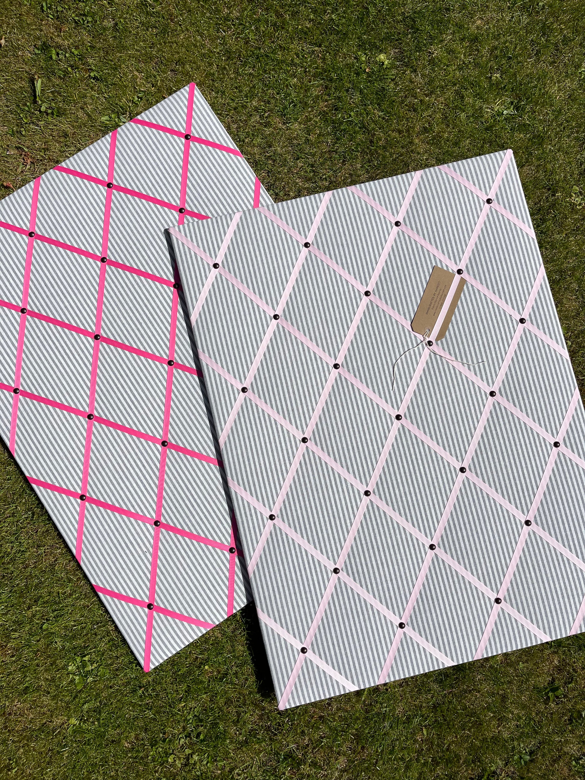 When placing your order please let me know whether you would like your notice board to hang portrait (with vertical stripes) or landscape (with vertical stripes)? If I don't hear from you I will make it LANDSCAPE.