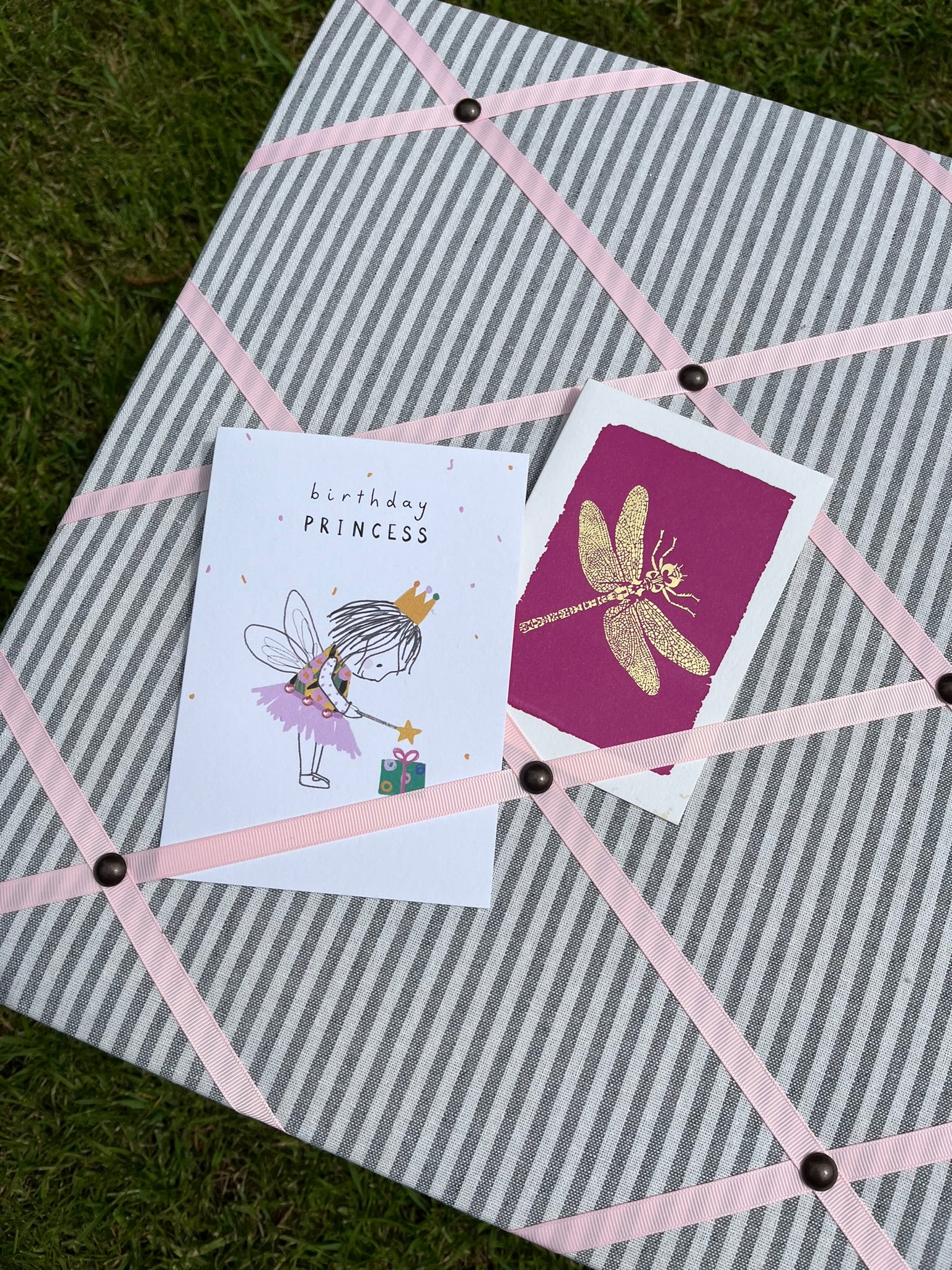 They are a great alternative to a cork board. There is no need to use pins because the ribbons are tightly secured with upholstery nails to ensure nothing will slip no matter how much you layer up. If however you would like to use the odd pin, you just need to push a little harder into MDF than you would with cork.