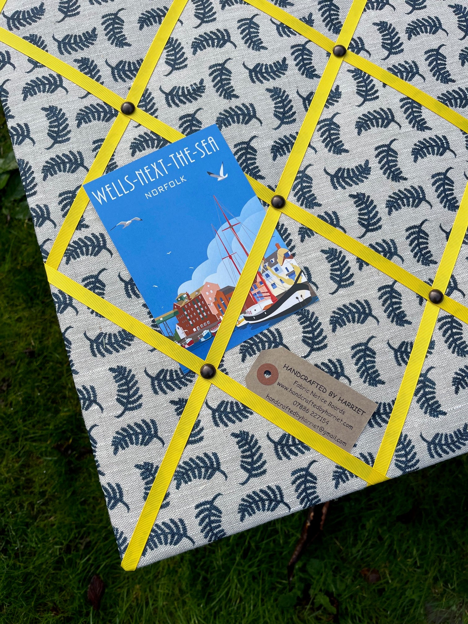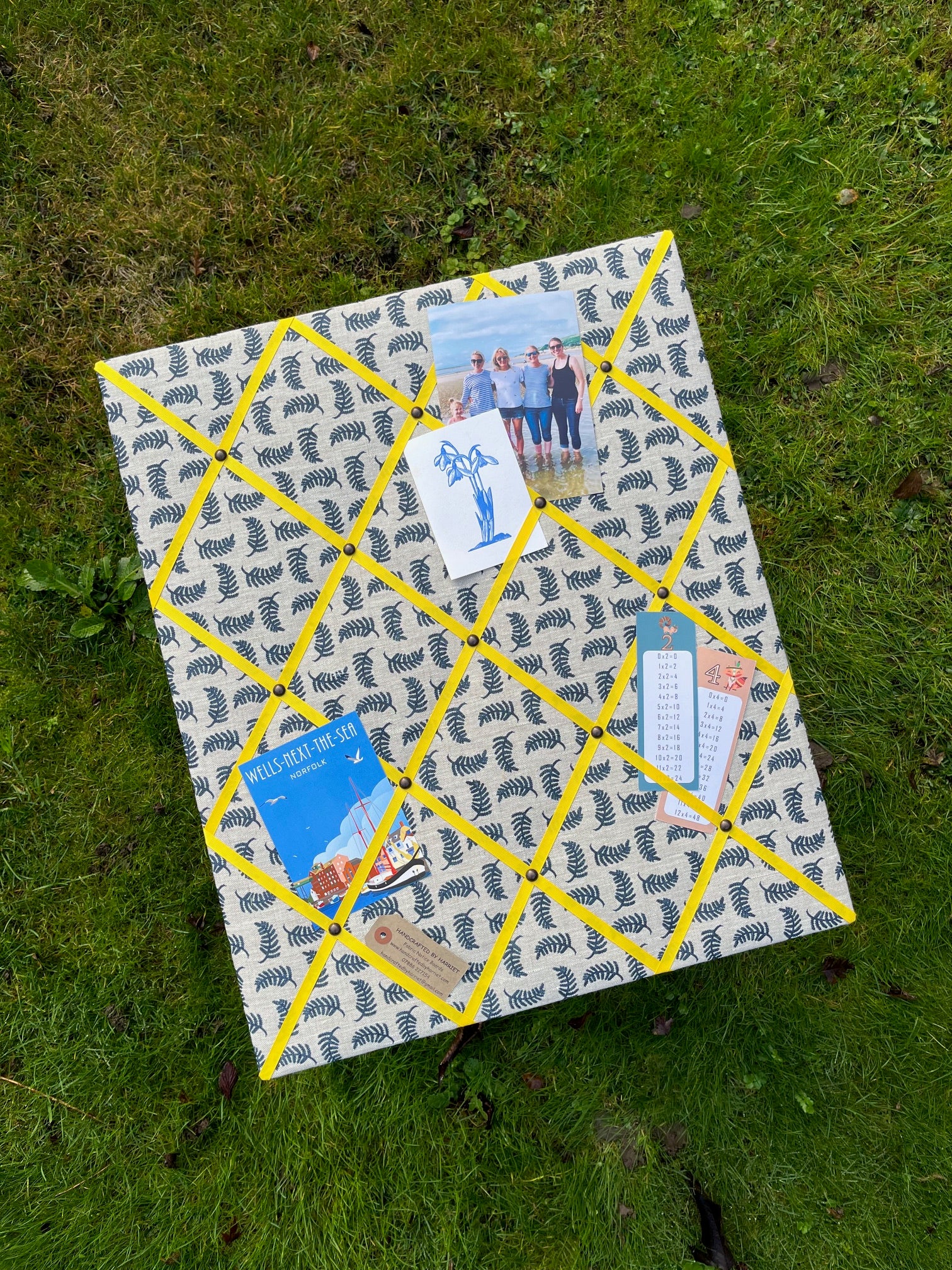 They are a great alternative to a cork pin board. There is no need to use pins because the ribbons are tightly secured with upholstery nails to ensure nothing will slip no matter how much you layer up. If however you would like to use the odd pin, you just need to push a little harder into MDF than you would with cork.