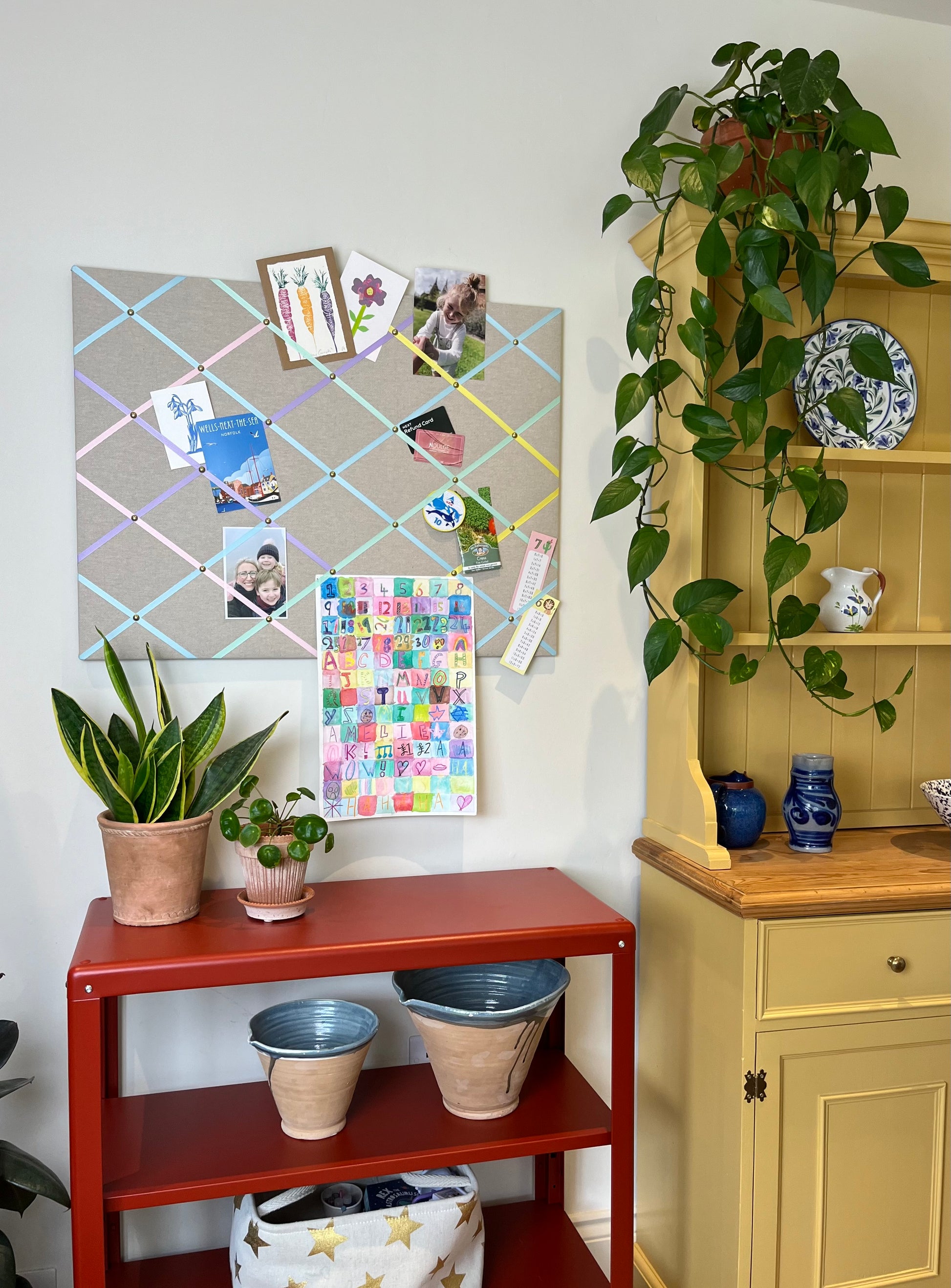 My notice boards are a great alternative to a cork pin board. There is no need to use pins (an advantage with kids!) because the ribbons are tightly secured with upholstery nails to ensure nothing will slip no matter how much you layer up. If however you would like to use the odd pin, you just need to push a little harder into MDF than you would with cork.